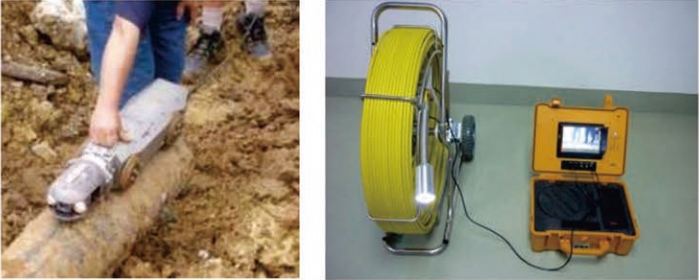 通过CCTV看到的污水管内部情况,并进行录像,从而能够对管道进行损坏情况分级;此种检测带压管道需要停输状态下进行。