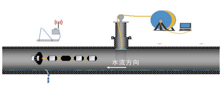 主要针对管道内异常的排查和检测。利用高灵敏度水听器和高清摄像头,可有效检测管内包括微小泄漏、破损、管瘤、气包、杂质淤积等多种异常情况,并通过地面辅助的信标系统,实现异常的精确定位。