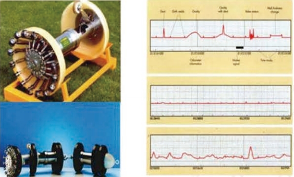 漏磁检测器主要由低频通讯系统、计算机、探头、励磁单元、动力皮碗、支撑轮、万向节.里程轮共同组成,