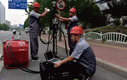 基本原理是通过发射天线向地下发射一系列宽频带短脉冲电磁波,主频从十几兆赫到几千兆赫,电磁波在地下介质内波阻抗分界面上引起反射和透射,采用接收天线接收反射波信号,通过雷达主机记录反射回波的时间、相位、振幅、波长等数据,对其进行同相轴变化分析,经过计算机处理、图像合成等手段,得到反映地下目标物的分布位置和状态,从而区分出目标管道